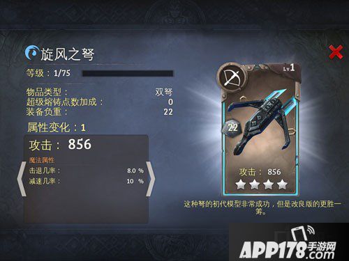 地牢猎手5寒冰属性4星双弩图鉴介绍!地牢猎手5是一款非常好玩的手机游戏,在这款游戏中一共有五种装备,其中法杖和双弩是远程的武器,剩下的是近战。今天APP178手游小编给大家带来寒冰属性4星双弩的攻略,下面我们一起来看看吧!