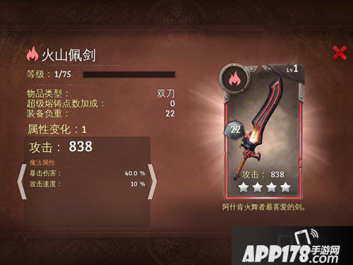 APP178手游网>地牢猎手5>游戏攻略>火舞者专属佩剑 四星火属性双刀图鉴详解介绍
