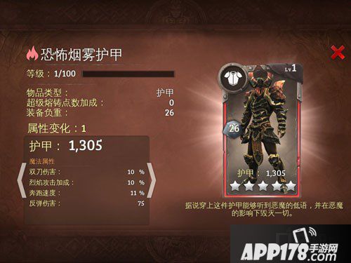 APP178手游网>地牢猎手5>游戏攻略>被恶魔支配的恐惧 五星火属性护甲图鉴详解介绍