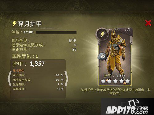 APP178手游网>地牢猎手5>游戏攻略>森林领主的传承 光明属性五星护甲图鉴详解介绍