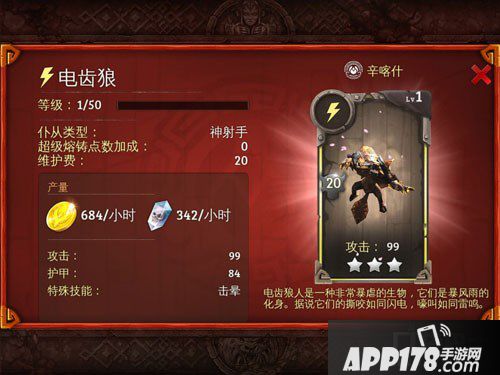 仆从介绍:电齿狼人是一种非常暴虐的生物,它们是暴风雨的化身,据说他们的撕咬如同闪电,号角如同雷鸣。