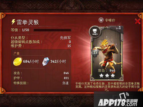 APP178手游网>地牢猎手5>游戏攻略>地牢猎手5新版本仆从雷拳灵猴图鉴详解介绍