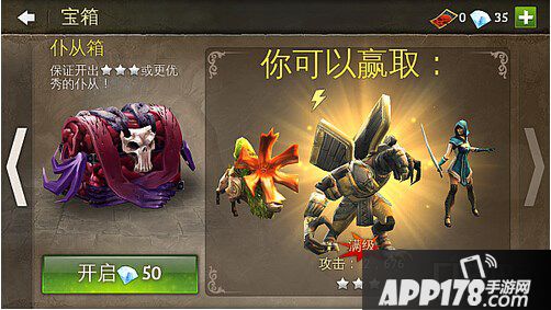 2、通过仆从宝箱开启,开启宝箱需要花费50个钻石(话说小编觉得有贵,不过要塞只需要设置10个仆从,系统送的三个,我们只需要另外的7个,7*50=350钻石,350钻石用来布置要塞,好吧当小编没说,土豪欢迎)
