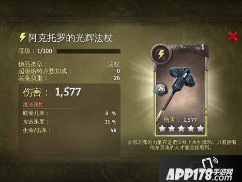 地牢猎手5光属性通缉五星阿克托罗的光辉法杖图鉴介绍!最新一周的光属性通缉来了~~今天APP178手游小编给大家带来本周的光属性通缉武器五星阿克托罗的光辉法杖图鉴,地牢猎手5是一款非常好玩的手机游戏,在这款游戏中每周都会有一些通缉任务,本周的通缉是光属性,奖励是光属性的法杖,下面我们就一起来看看吧~