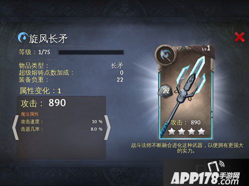 地牢猎手5寒冰属性4图鉴介绍!地牢猎手5是一款非常好玩的手机游戏,在这款游戏中一共有五种装备,其中法杖和双弩是远程的武器,剩下的是近战。今天APP178手游小编暴走的脂肪给大家带来寒冰属性5星长矛的攻略,下面我们一起来看看吧!
