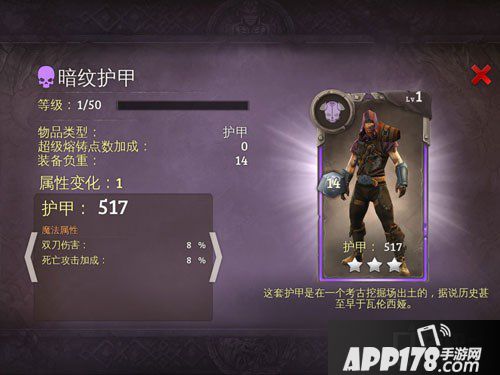 APP178手游网>地牢猎手5>游戏攻略>地牢猎手5暗纹护甲介绍 死亡属性护甲攻略