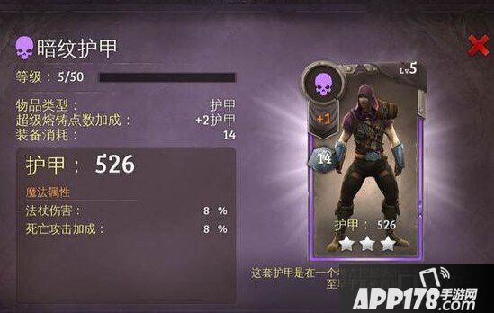 APP178手游网>地牢猎手5>游戏攻略>地牢猎手5装备搭配攻略 暗纹护甲防装介绍