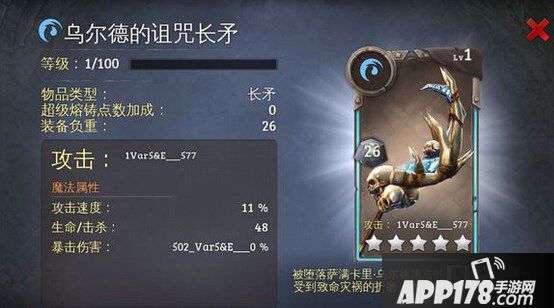 地牢猎手5新通缉套装寒冰属性长矛图鉴介绍!地牢猎手5是一款非常好玩的手机游戏,在这款游戏中最近更新出了新的通缉版本,当然与之一起的还有新的通缉套装,今天APP178手游小编给大家带来这款游戏中最新寒冰属性通缉长矛的图鉴介绍,希望大家喜欢!