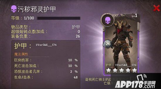 地牢猎手5新通缉套装死亡属性护甲图鉴介绍!地牢猎手5是一款非常好玩的手机游戏,在这款游戏中最近更新出了新的通缉版本,当然与之一起的还有新的通缉套装,今天APP178手游小编给大家带来这款游戏中最新死亡属性通缉护甲的图鉴介绍,希望大家喜欢!