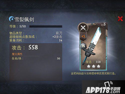 APP178手游网>地牢猎手5>游戏攻略>地牢猎手5寒冰属性武器 雪裂佩剑属性介绍