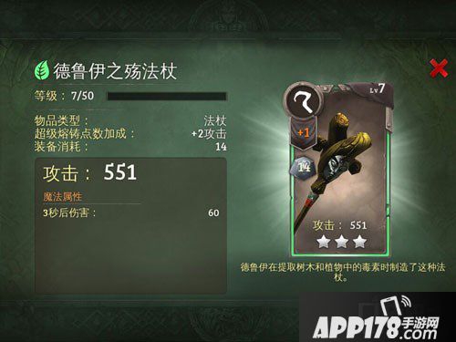 地牢猎手5自然属性武器三星法杖图鉴介绍!地牢猎手这款游戏中一共有五种属性和五种武器,每一种武器都有自己的特点,同时属性之间也有着相生相克的关系。法杖,有着超级高的远程输出能力,但是续航能力很差,一旦被近身就危险了。今天APP178手游小编就来给大家说说这款游戏中自然属性武器三星法杖图鉴,希望大家喜欢!