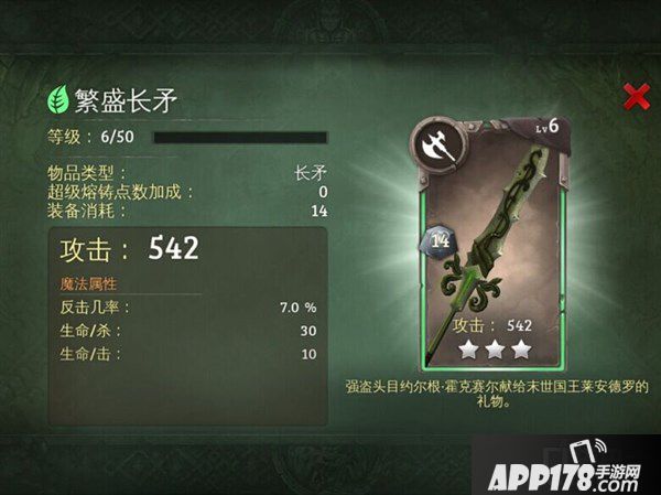 APP178手游网>地牢猎手5>游戏攻略>地牢猎手5三星自然武器 繁盛长矛图鉴详解