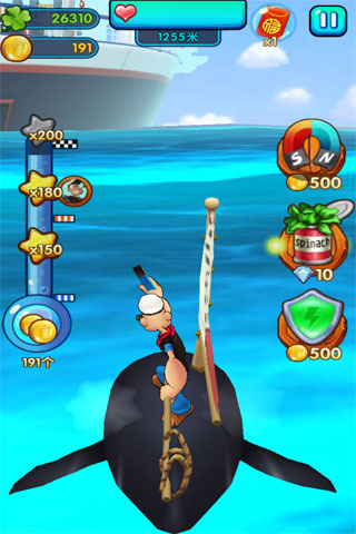 您将在游戏中扮演大力水手波派,躲避各种障碍,追逐坏人,解救妻儿!游戏设有轮船、船舱、森林场景忠实还原动画片的世界,更有无尽关卡玩法挑战您的极限。波派还穿上了不同的装扮,各种装扮拥有不同的技能,让你的挑战变得有趣轻松,魔法狗Jeep更会助您一臂之力。
