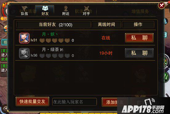 Ø 左下方文本框可点击后输入玩家名称,输入后点击【添加好友】按钮即可发起添加。