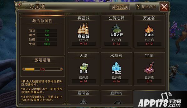 l万灵图:搜集世界上不同怪物的灵魂碎片,达成搜集数量,会为玩家增加对应的属性加成;