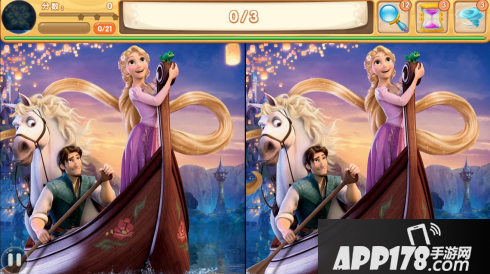 玩家需要找出左右两边图片中的有区别区域,每个找茬关卡共有四张背景图,每张背景图有一定数量目标,数量显示在上方UI,原目标物数量板显示本关需要找到的总数量,总数量为玩家需要找到所有目标,四张图的目标全部找到后算通关。