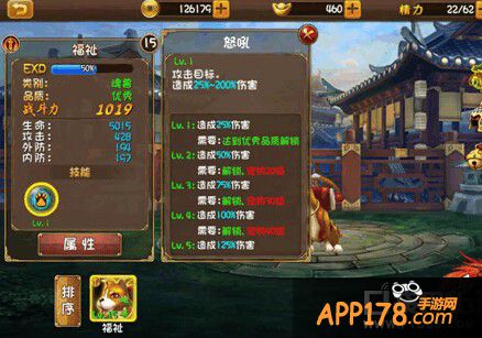 进阶:可以使用道具“幻心草”通过进阶可以获得属性大幅增加,并且获得主动技能“怒吼”(不同阶段的进阶需求材料不一样哦)