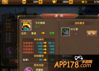 进阶:可以使用道具“幻心草”通过进阶可以获得属性大幅增加,并且获得主动技能“灵狸斩”(不同阶段的进阶需求材料不一样哦)