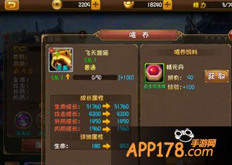 喂养:可以使用道具“饲料”通过喂养进行升级获得属性增加(不同饲料增加的经验不一样哦)