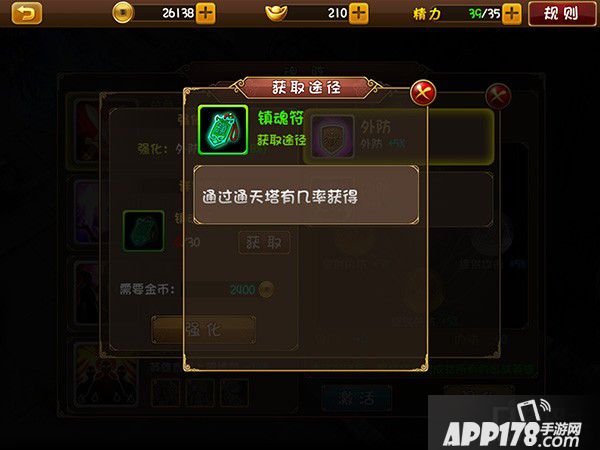 镇魂符可以通过通天塔获得。