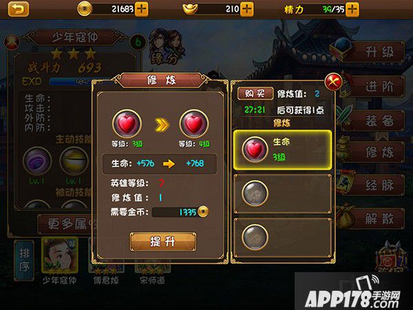 2.消耗相应的金币英雄修炼