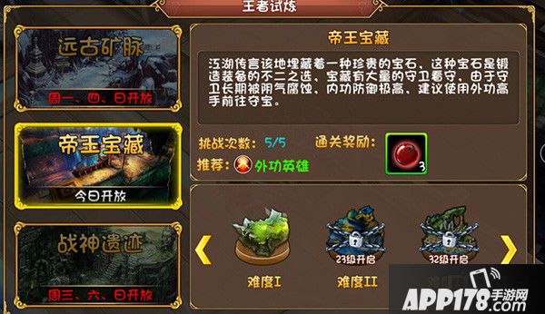 APP178手游网>大唐双龙传>游戏攻略>帝王宝藏什么时候开放 帝王宝藏奖励详解