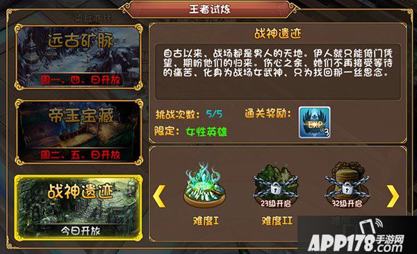 APP178手游网>大唐双龙传>游戏攻略>男性英雄靠边站 战神遗迹限定条件介绍详解