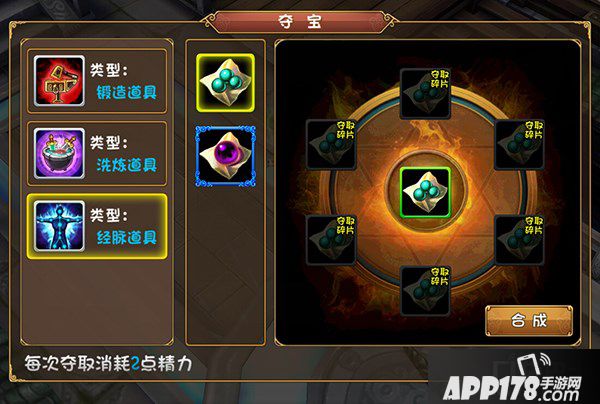 夺宝是大唐双龙传手游的竞技玩法之一,玩家可以战胜其他玩家夺取道具碎片用来合成道具。每次夺取需要消耗2点精力。可以合成的道具主要用来装备锻造、装备洗炼和英雄经脉开通。