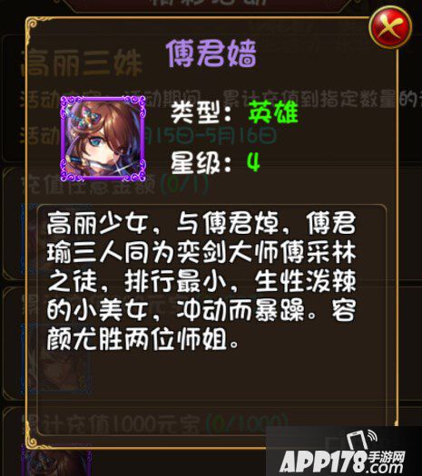 以上就是APP178手游小编为您带来的大唐双龙传手游英雄傅君嫱的介绍,更多精彩内容请继续关注APP178手游大唐双龙传手游专区!