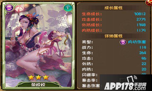 唐双龙传手游荣姣姣好不好技能数据一览,内功伤害性质,从下面的多种技能和缘分数据来看,姣姣大美女还是值得培养的,玩家可以通过招募或者是碎片获得该角色,:并且注意最后的缘分组合,以便后期上阵组队。