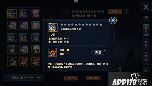 升星上限:伙伴品质影响伙伴可以升星的上限。