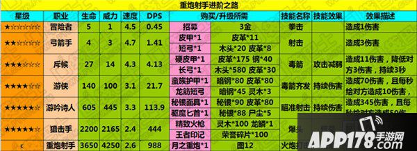 很多玩家觉得重炮射手这个兵种很烂,很渣。这并不是没有道理的,因为毕竟这个兵种不是一个前期兵种,他主要的作用就是永恒竞技场爬塔,其他场合基本用不到,所以APP178手游小编暴走的脂肪不建议新手玩家练这个兵种,到后期在图12凑巧打到进阶材料再去练也不晚。