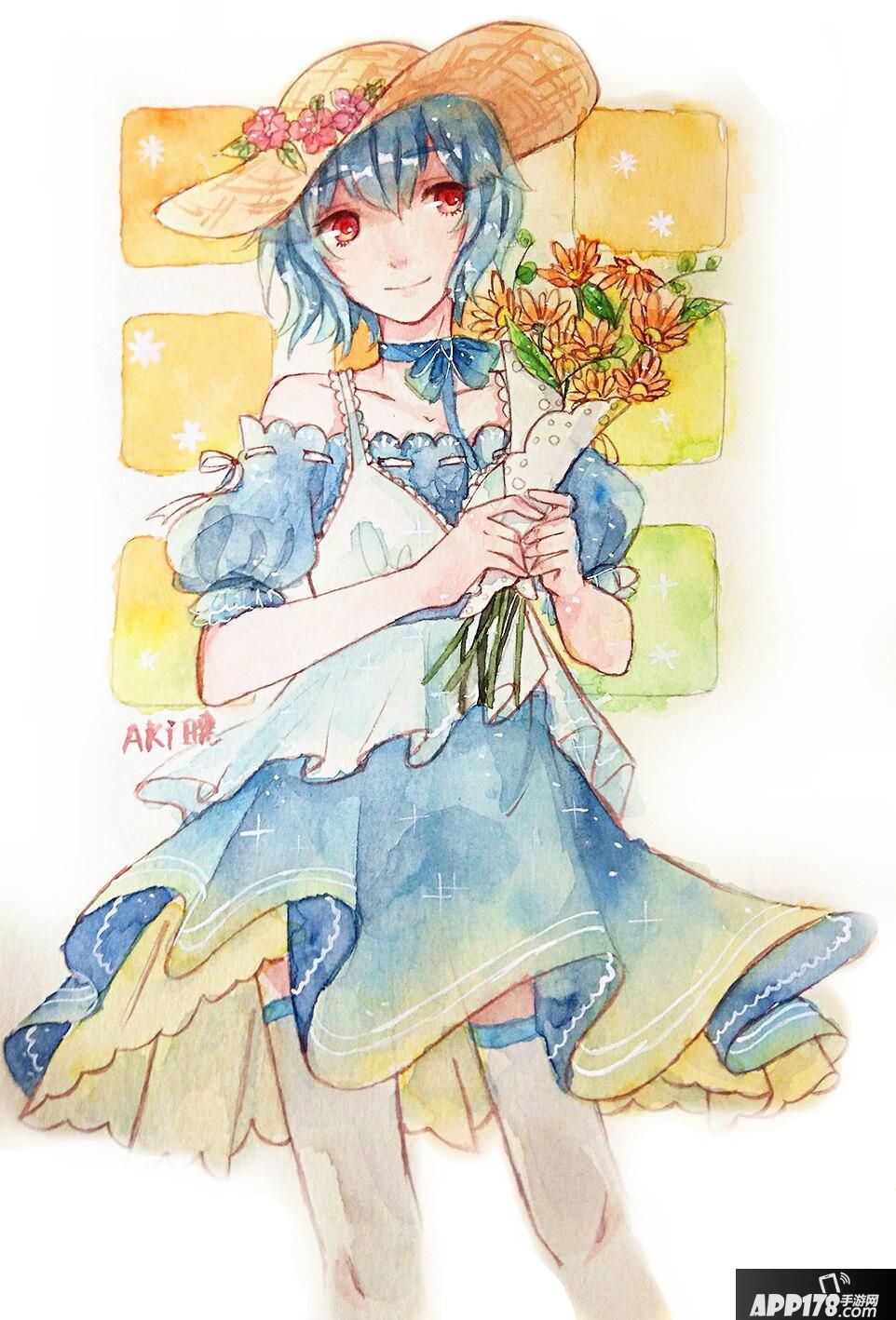 草帽上点缀着几朵鲜花