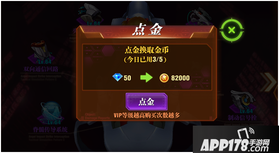 每日可以通过点金功能使用钻石兑换金币,点金过程中有很高几率出现暴击获得大量金币哦!每天有1次免费点金的机会,之后需使用钻石购买,购买次数随着VIP等级越高而增加。