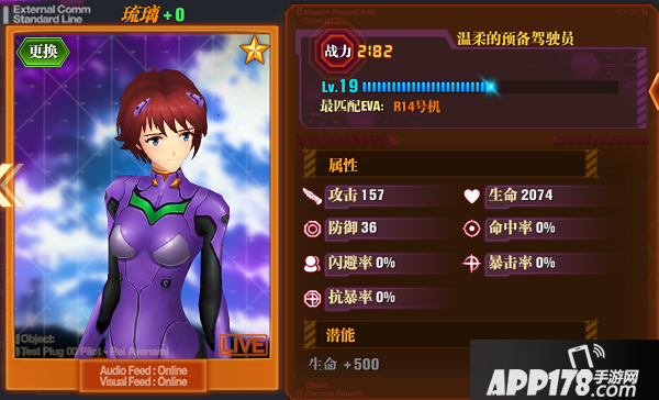 第七章游戏场景进入海上战斗,战斗场景的多彩变换也是此游戏的特色之一。25级的时候我们可以获得25级等级奖励一星橙色驾驶员“琉璃”。“琉璃”是20级获得的EVA X31号的适配者。更换驾驶员,并将原先自身驾驶员回收升级进阶新的驾驶员。