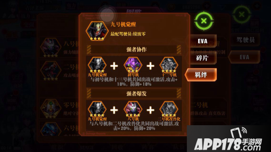 目前,对于这架新出的EVA,官方还未公布它的获取方式,不过它的技能以及属性值已经早已进入大家的视野。除了基础属性大大超出了9号机,作为9号机觉醒型机体,它的合击技能就是死亡召唤,攻击敌方生命最低的目标、造成300%以上的攻击的伤害、而且对于生命较低的敌方,还会造成额外的伤害加成。最需要注意的是,同一个eva可以有不同的属性变化,每一个eva的搭配都不是仅有的几个搭配选项,而是有很多个,这就给玩家们提供了几百种不同的搭配选择,而且每一个属性的加成都会有一段IP的故事等待大家去回忆、去发掘。就是当它与八号机、二号机兽化一起出击时,将可激活终极爆发属性,大幅度提升自身生命力和攻击力。