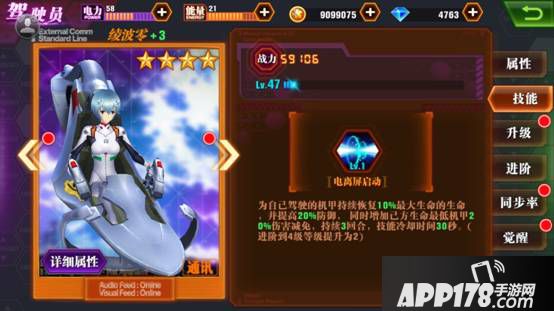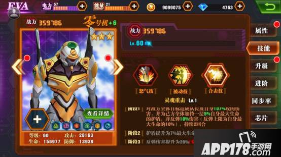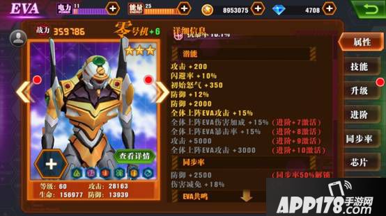 零号机的潜能也与其他EVA不同,初号机、二号机兽化都是攻击、伤害加成,而零号机更注重防御,特别是进阶+4、+5的潜能,防御+12%和防御+2000,成就了零号机无人能及的高防御。