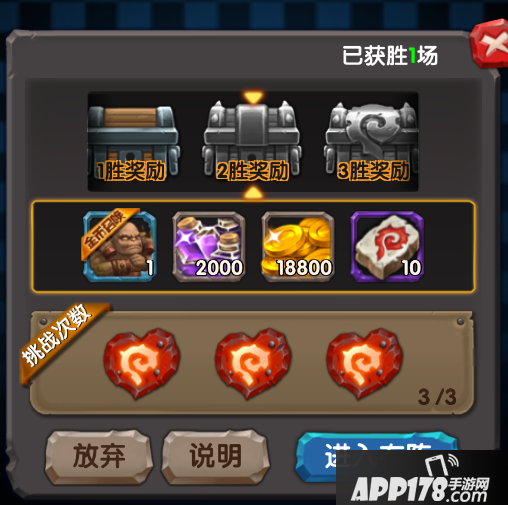 选择不同的入场方式获得的奖励不同,胜利场数越多,奖励越丰厚!