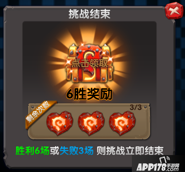 当6胜挑战结束后,将会立即跳出6胜奖励。