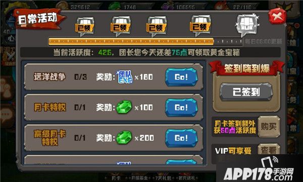 5:升级主要通道:做日常活动,可以获取大量的经验,同时也可以获取药水。同时还有获得扫荡次数和英雄升级装备。战斗副本就是主战场,也就是我们刷图打怪的老地方(想要升级的快,每日活动必须要做完,在升级的同时也能获取水晶,)