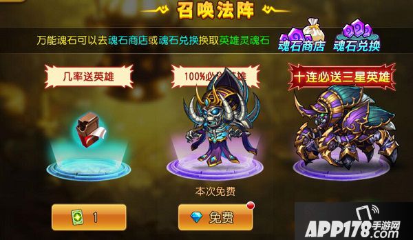 在召唤法阵中抽到已有英雄,将自动转为万能魂石
