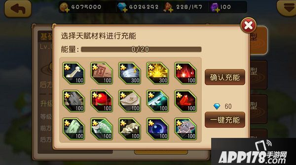 如果没有废弃的天赋材料或是无法抉择时可消耗钻石一键充能。