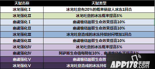 天赋效果:1.激活冰冻效果2.加强冰冻几率3.增加冰冻持续回合数