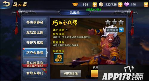 巧夺金钱帮在每周一、三、五、日开启,挑战不是天天有哦~想要就得抓紧时间,切莫浪费天上掉钱的好机会。这个玩法还有简单、普通、困难三种难度设置,后两种随着玩家等级的提升逐一开启。另外,挑战金钱帮也是要耗费体力的,因此一定要选好战斗阵容,避免得不偿失。