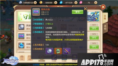 和风色勇士们的成长息息相关的猎风任务是提升等级和职衔的首要途径,每天前20次奖励丰厚,20次以后也只是逐渐减少,所以每天的前30个猎风任务非常值得做。