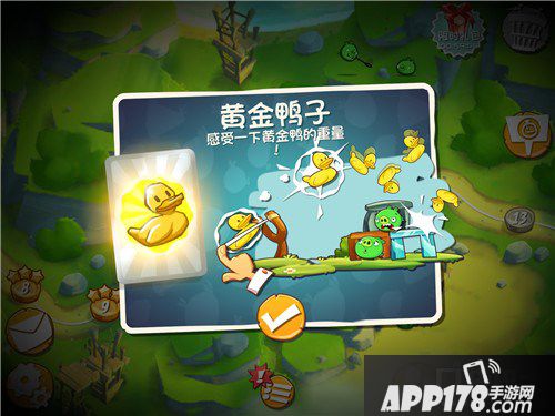 愤怒的小鸟2道具可以说是通关游戏必不可少的东西,对于大部分玩家来说,能有巧妙的运用道具,可以让三星通关变得更加轻松惬意,当然了,对于大神玩家来说,道具只是一个摆设。那么今天APP178手游小编暴走的脂肪就来为大家介绍一下愤怒的小鸟2道具黄金鸭子的使用方法,希望对大家有所帮助。