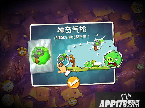 愤怒的小鸟2道具可以说是通关游戏必不可少的东西,对于大部分玩家来说,能有巧妙的运用道具,可以让三星通关变得更加轻松惬意,当然了,对于大神玩家来说,道具只是一个摆设。那么今天APP178手游小编暴走的脂肪就来为大家介绍一下愤怒的小鸟2道具神奇气枪的使用方法,希望对大家有所帮助。