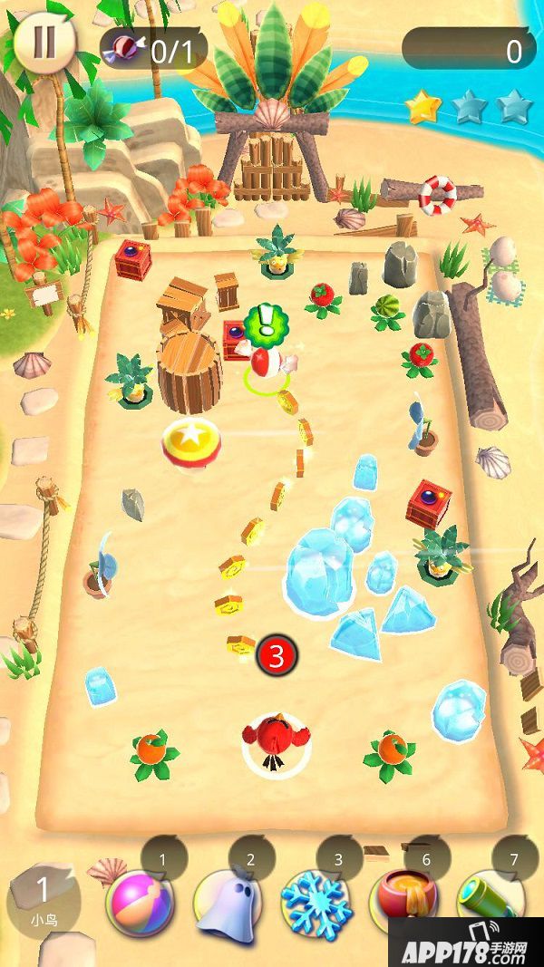 收集糖果相对来说简单直白些,玩家发射怒鸟碰撞到或者经过糖果即可完成糖果的收集,大部分地图都需要收集多颗糖果。