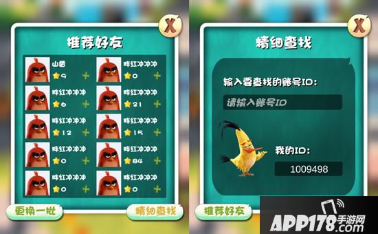 作为《愤怒的小鸟冲冲冲》里的玩法之一,好友系统让玩家们有了互相帮助、互相竞赛的途径。有了好友,你不但可以在缺乏体力的时候向他们求助,还可以跟他们比积分、比谁打通的关卡多。需要注意的是,《愤怒的小鸟冲冲冲》里有两种添加好友的方式,一个是添加系统随机推荐给你的朋友,一个是通过“精细查找”来添加好友。简而言之,要和熟人一起玩这款游戏得用正确的姿势加好友。