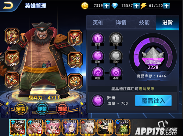 英雄通过吸收魔晶的能量激活特殊属性,当英雄激活了全部特殊属性,等级也满足了要求之后,就可以使用进阶石和符文进阶。